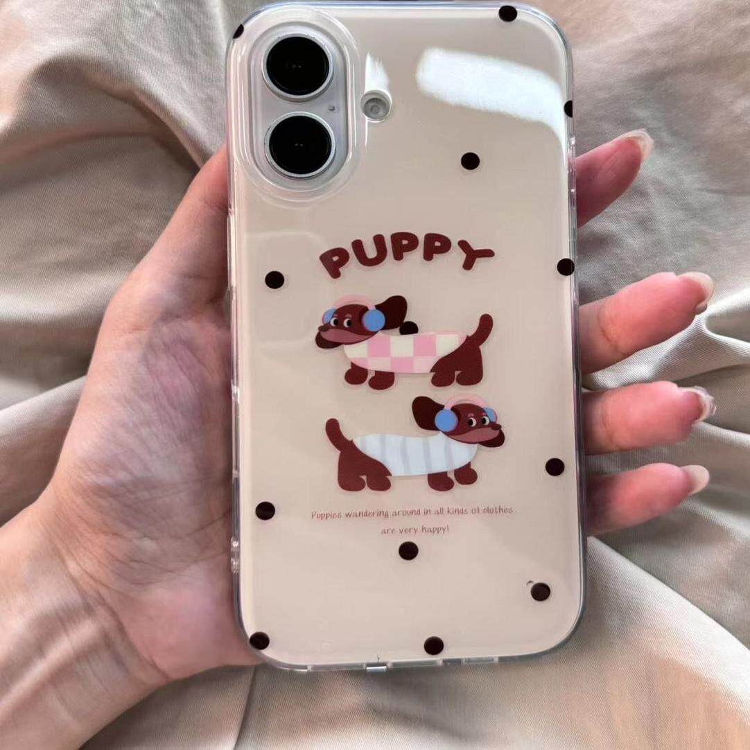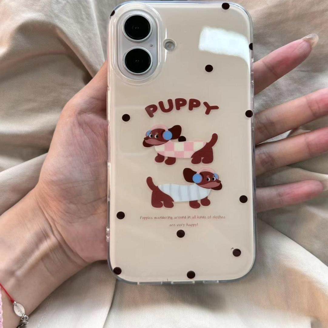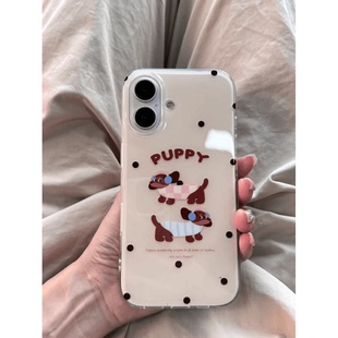 15promax双层xsmax可爱小米15华为 焱焱卡通两只耳麦毛衣腊肠狗适用于iPhone16plus手机壳苹果11