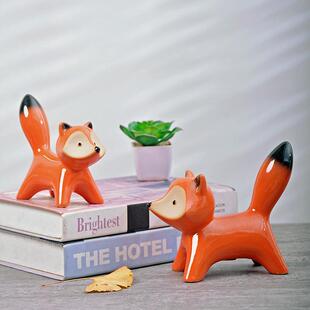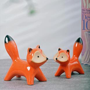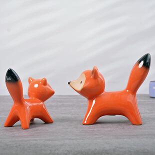 桌面陶瓷摆件动物狐狸饰品情侣田园生日新婚礼物电视柜创意工艺品
