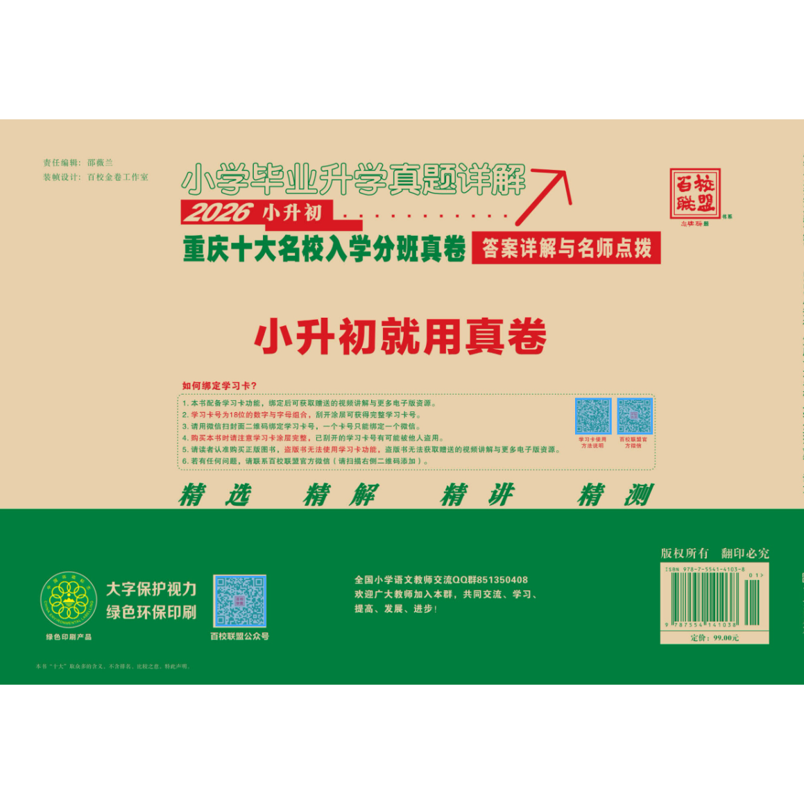 百校联盟 2026新版 语文小升初138套 重庆十大名校入学真题分班真卷 重庆小学毕业升学真题详解 重庆小升初真题卷