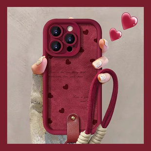 适用华为mate80pro手机壳酒红色新款 30网红带挂绳 mate70满屏蝴蝶结pura80pro全包防摔M50小羊皮40高级感女款