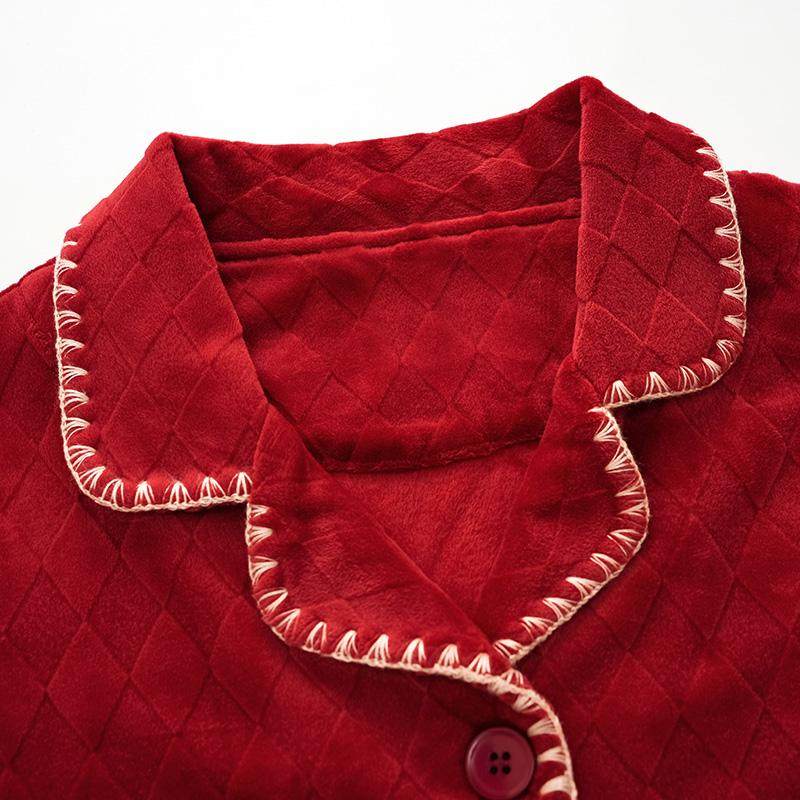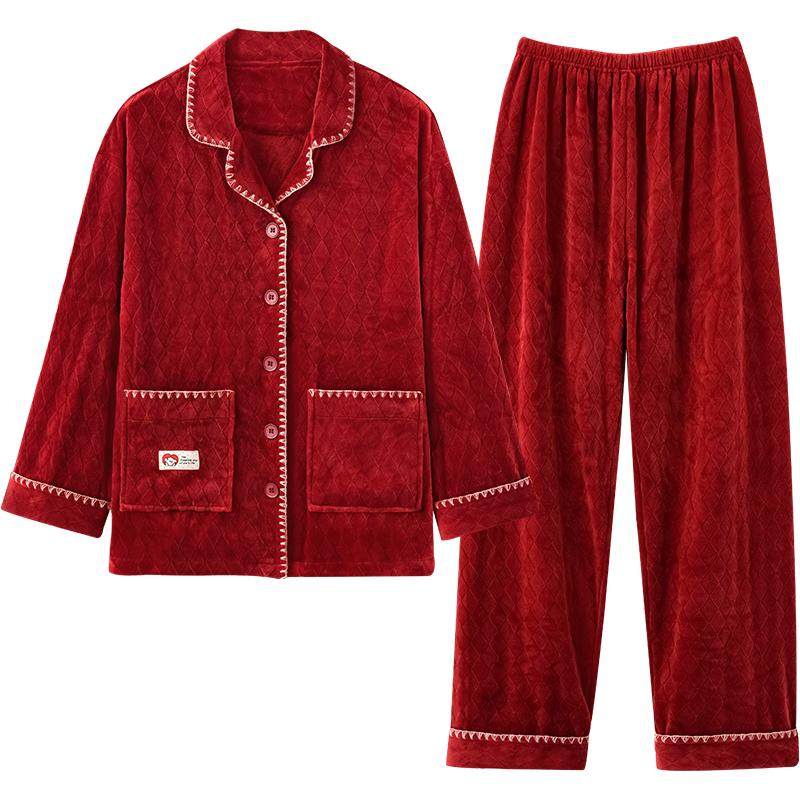 马克公主秋冬季 女薄绒红色本命年家居服情侣结婚睡衣冬海岛绒套装