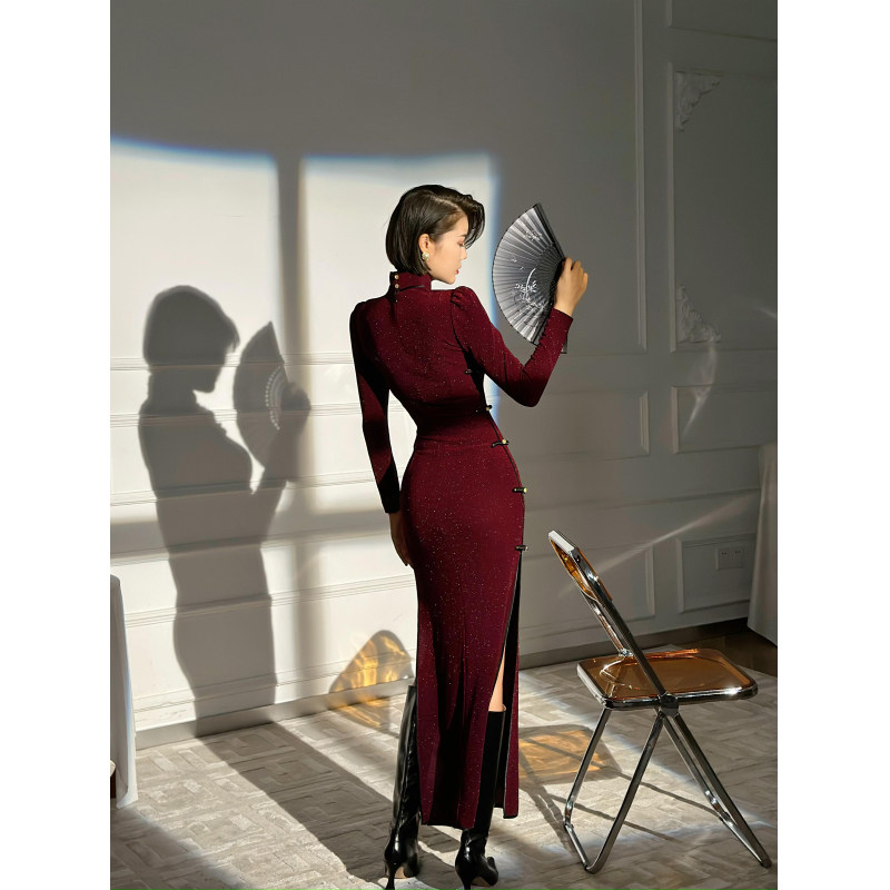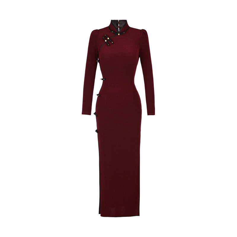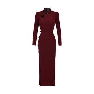 XULU原创新款 旗袍裙复古斜襟连衣裙 醋酸亮丝气质大气温婉修身