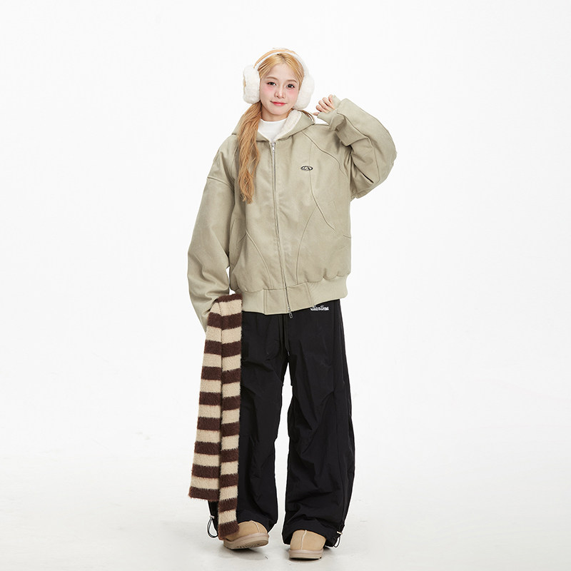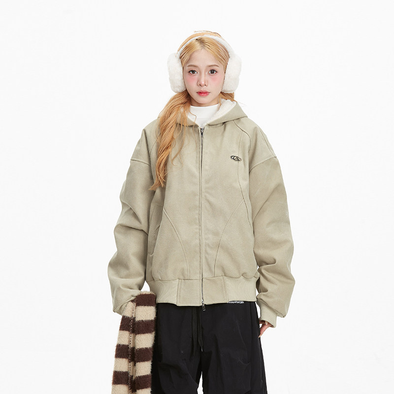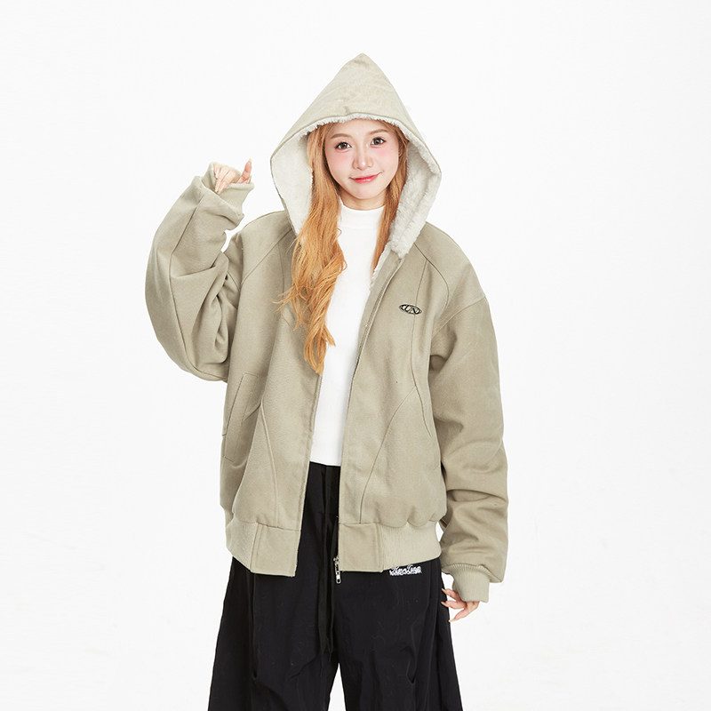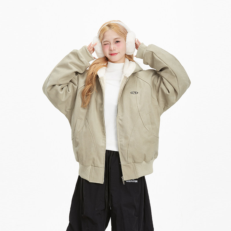 NERESUM美式 复古毛绒内里外套女秋冬潮牌保暖双拉链cleanfit棉衣