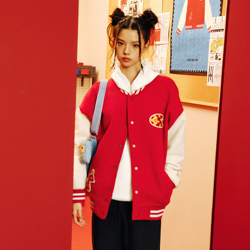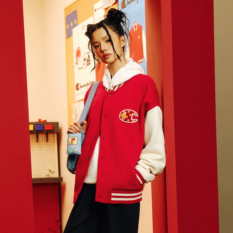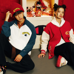 王子奇同款 本命年红色 Champion冠军蛇年棒球服加绒外套春秋新款