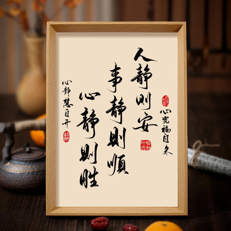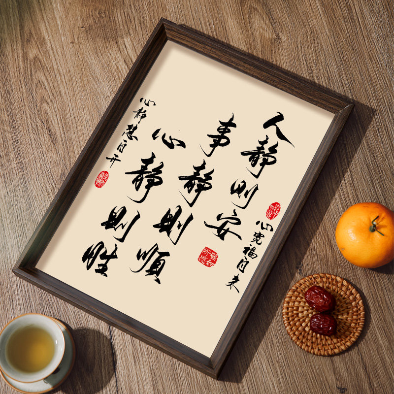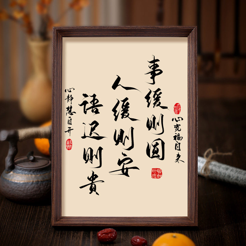 人静则安事静则顺中式 饰挂画 书法字画不急静心桌面相框摆件书房装