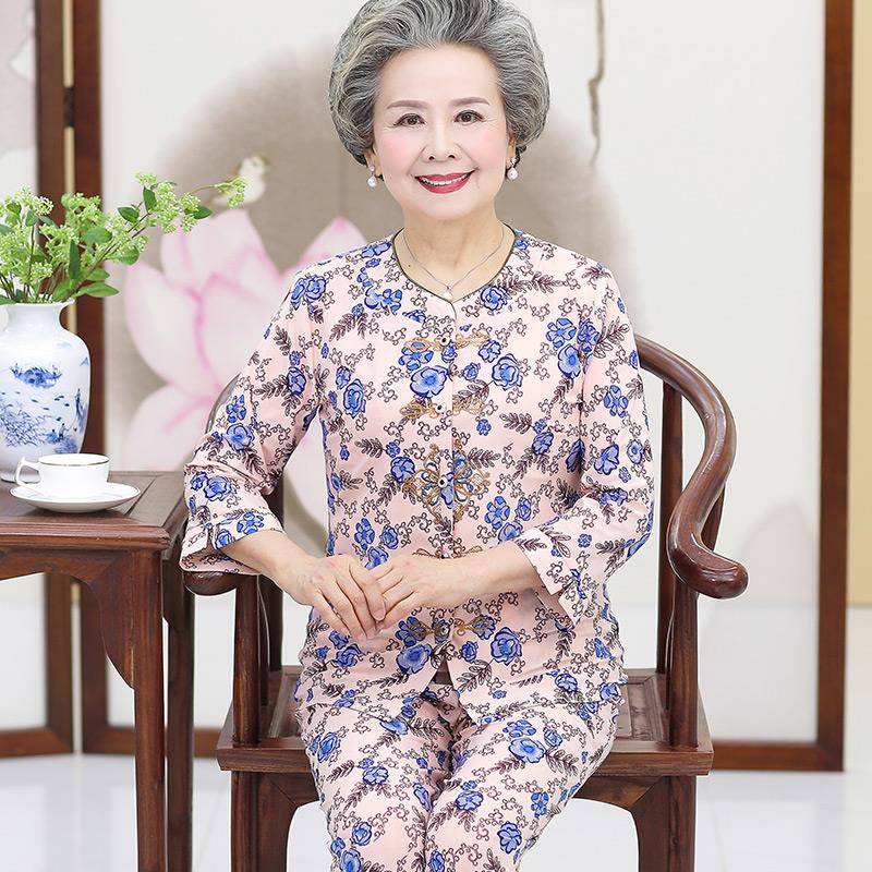 夏装 七分袖 妈妈装 棉绸老太太老人衣服夏天奶奶装 套装 中老年人女装