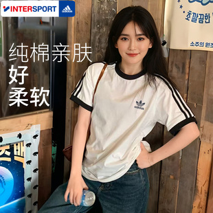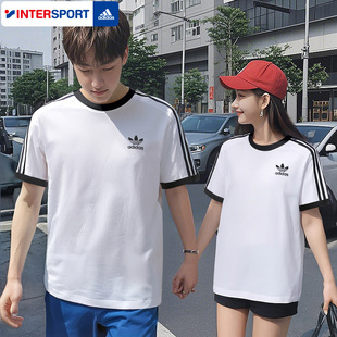 情侣装 新款 宽松白色上衣男 冬季 阿迪达斯三叶草运动T恤女纯棉短袖