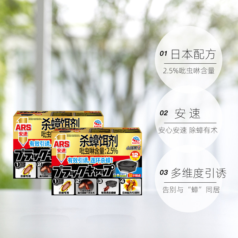 安速黑克饵剂小黑帽杀蟑螂药一窝全窝端蟑螂屋神器12枚 自营