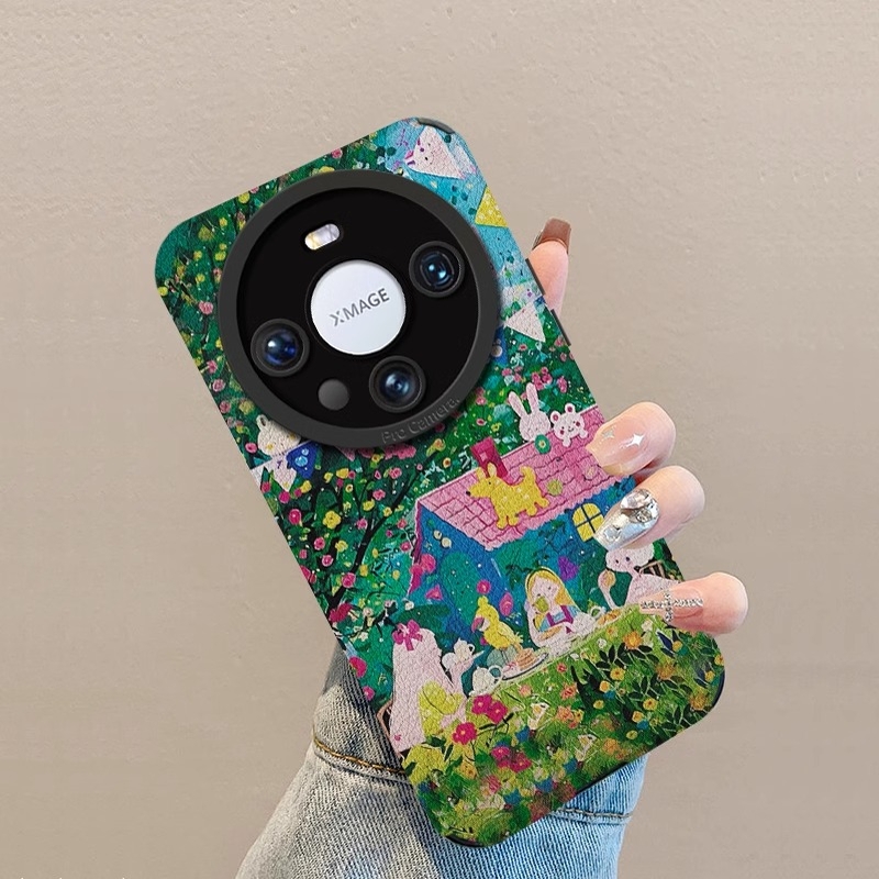 油画风花园适用华为mate80pro手机壳mate60 60防摔Magic6高级x50i全包硅胶软壳40 70女nova13小羊皮p70pro新款