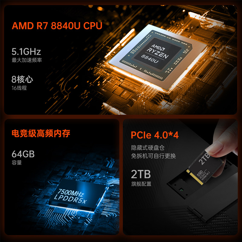 壹号本OneXPlayer 8840U三合一平板电脑 壹号游侠X1mini平板电脑笔记本8.8寸大屏游戏可拆卸手柄掌机AMD