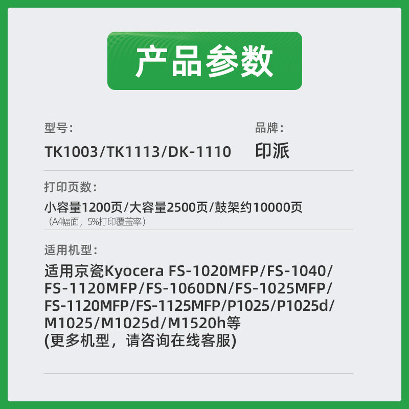 M1520h 印派适用京瓷DK M1025鼓架M1025d P1025d 1125MFP打印机墨盒TK1003碳粉盒TK1113墨粉盒 1110硒鼓P1025