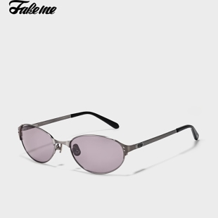 Fakeme复古椭圆框金属墨镜女时尚 米可micro 防晒遮阳太阳镜女款