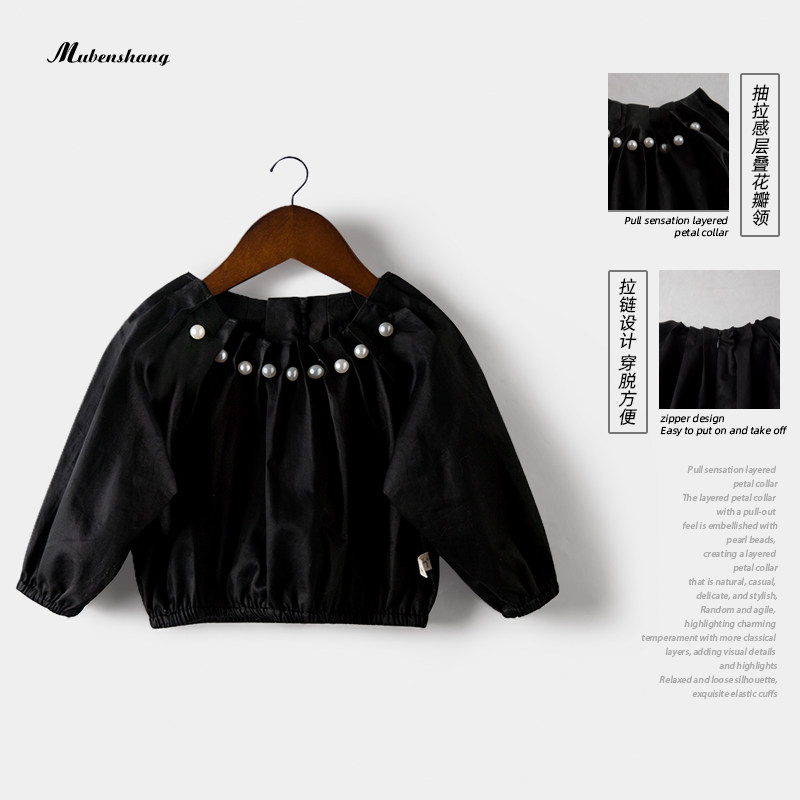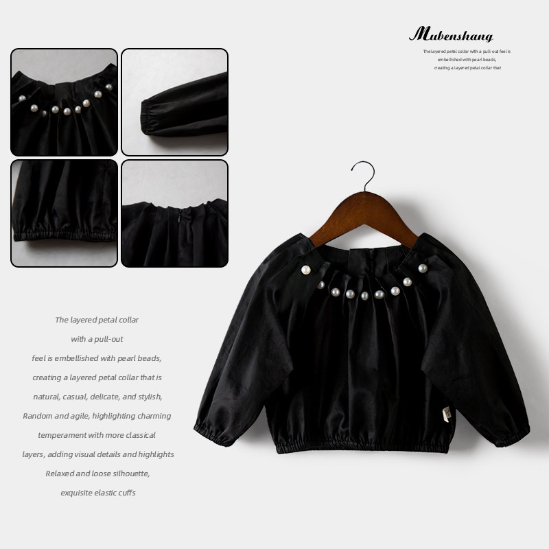 儿童黑色衬衫 衣服设计师款 宝宝长袖 木本尚女童春秋上衣2025新款