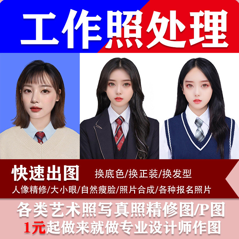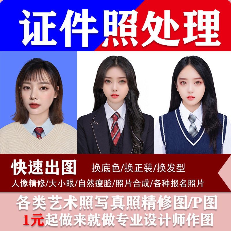 专业证件照人像p图无痕修图改字换发型衣服改底色尺寸一寸形象照