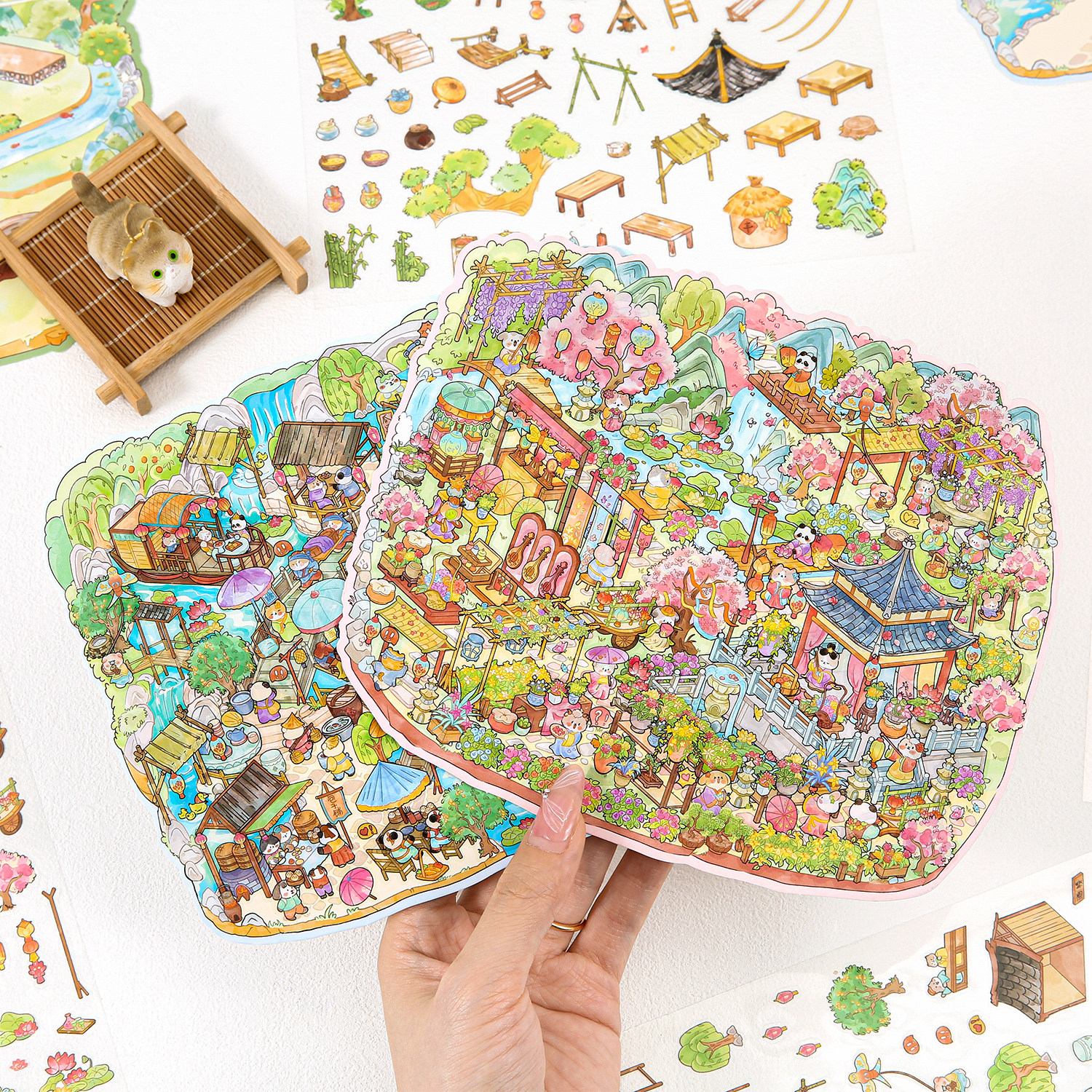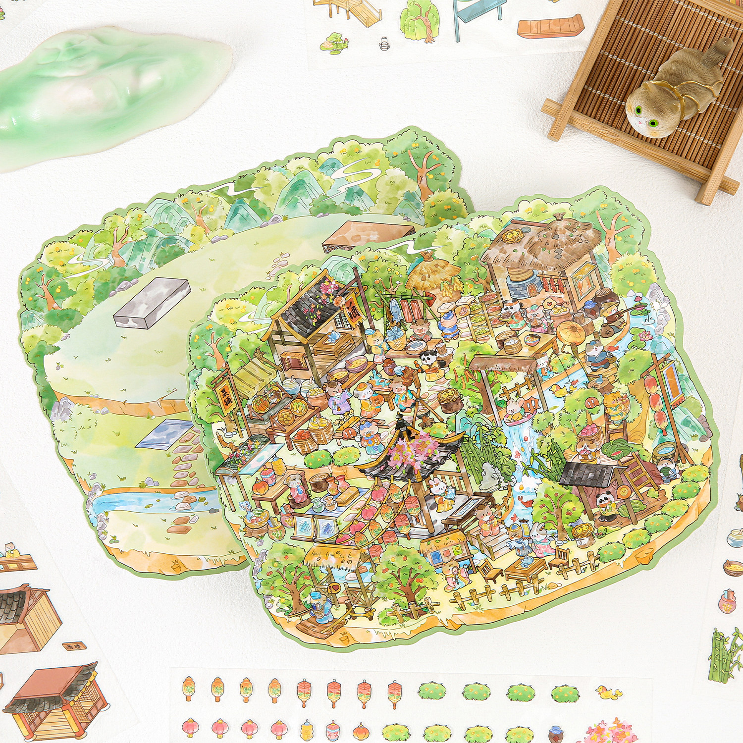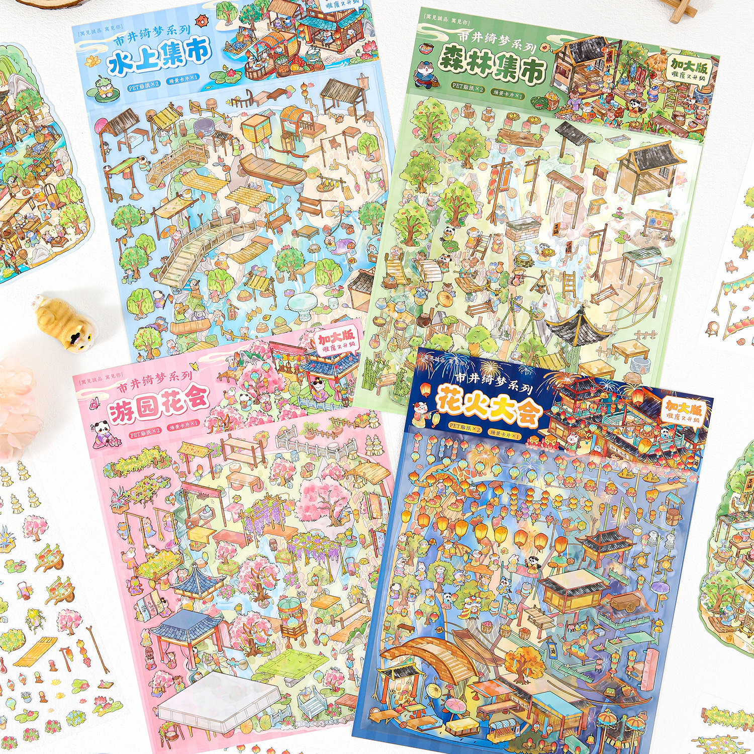 寓见诚品造景贴纸市井绮梦系列大尺寸花火大会古风造景贴纸大号超大版 中国风3D立体小屋贴画玩具女孩打发时间