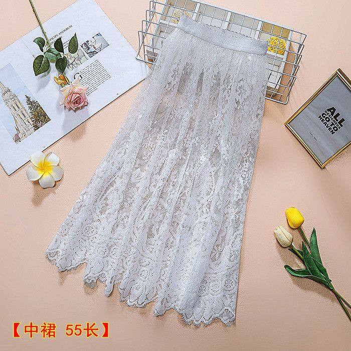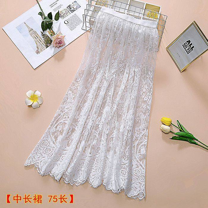 白色蕾丝蓬蓬蛋糕短裙女夏季 胖妹妹mm高腰遮胯显瘦a字半身裙 新款