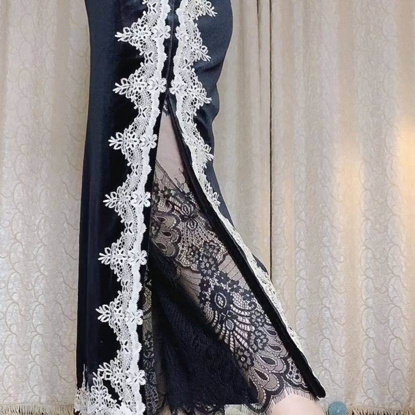 裙子 女胖mm显瘦a字开叉长款 复古直筒黑色灯芯绒半身裙秋冬款 大码