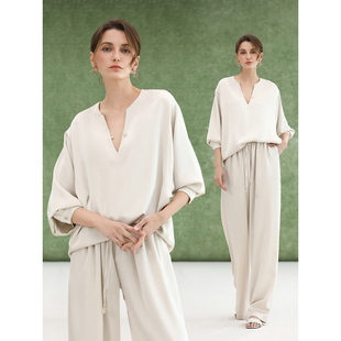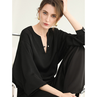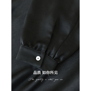 COCOBELLA奢感黑色缎面极简风衬衫 女夏气质OL通勤上衣SR7066