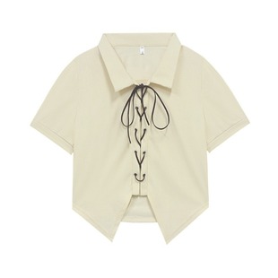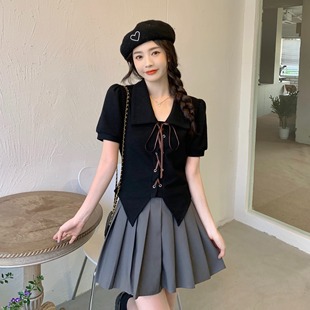 设计感小众别致短袖 胖mm显瘦正肩绑带新款 上衣T恤女 女装 300斤大码