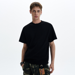 MADWITCH美式 T恤男女宽松休闲垂感透气boxy上衣ins 肌理感针织短袖