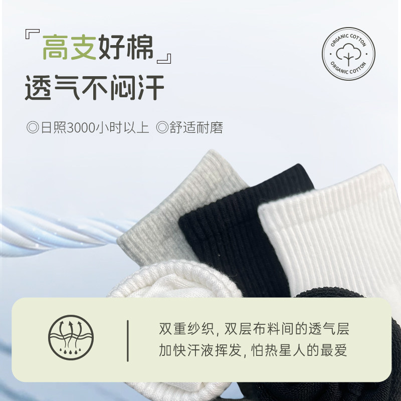防臭袜中筒袜纯棉女式 袜男式 袜 棉袜四季 新疆长绒棉袜子7A抗菌女式
