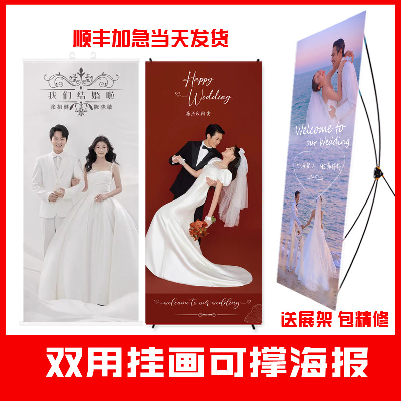 结婚婚礼婚纱照片酒店迎宾海报易拉宝婚庆展架支架设计海报定制作