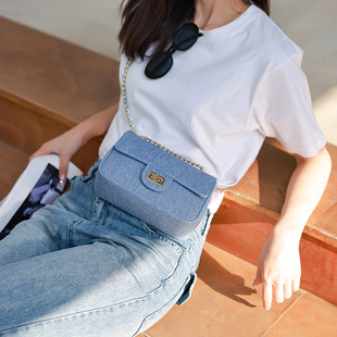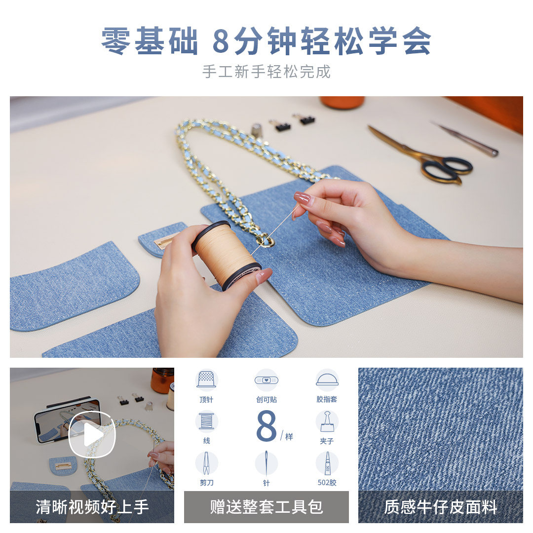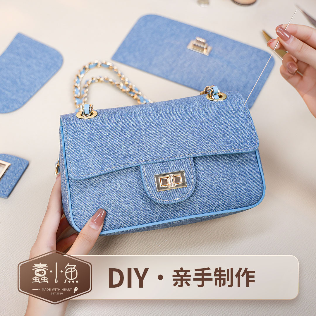 蠢小鱼小香风大牌款 女牛仔包真皮登山斜挎包diy手工包自制材料包