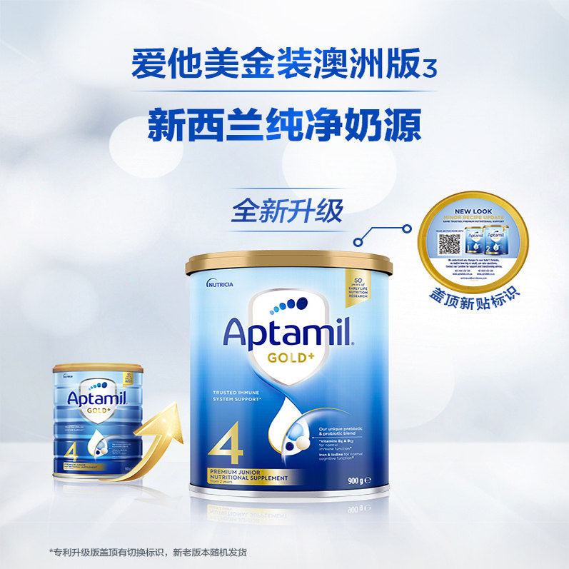 4段婴幼儿配方奶粉四段900g罐 Aptamil澳洲爱他美金装 效期27.5