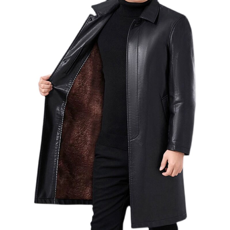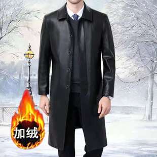 加长过膝皮大衣男长款 皮风衣男中长款 冬季 加厚皮大衣 海宁正品
