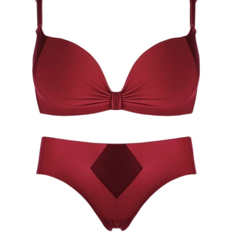 红色本命年文胸聚拢小胸收副乳防下垂无钢圈结婚新娘内衣裤 女套装