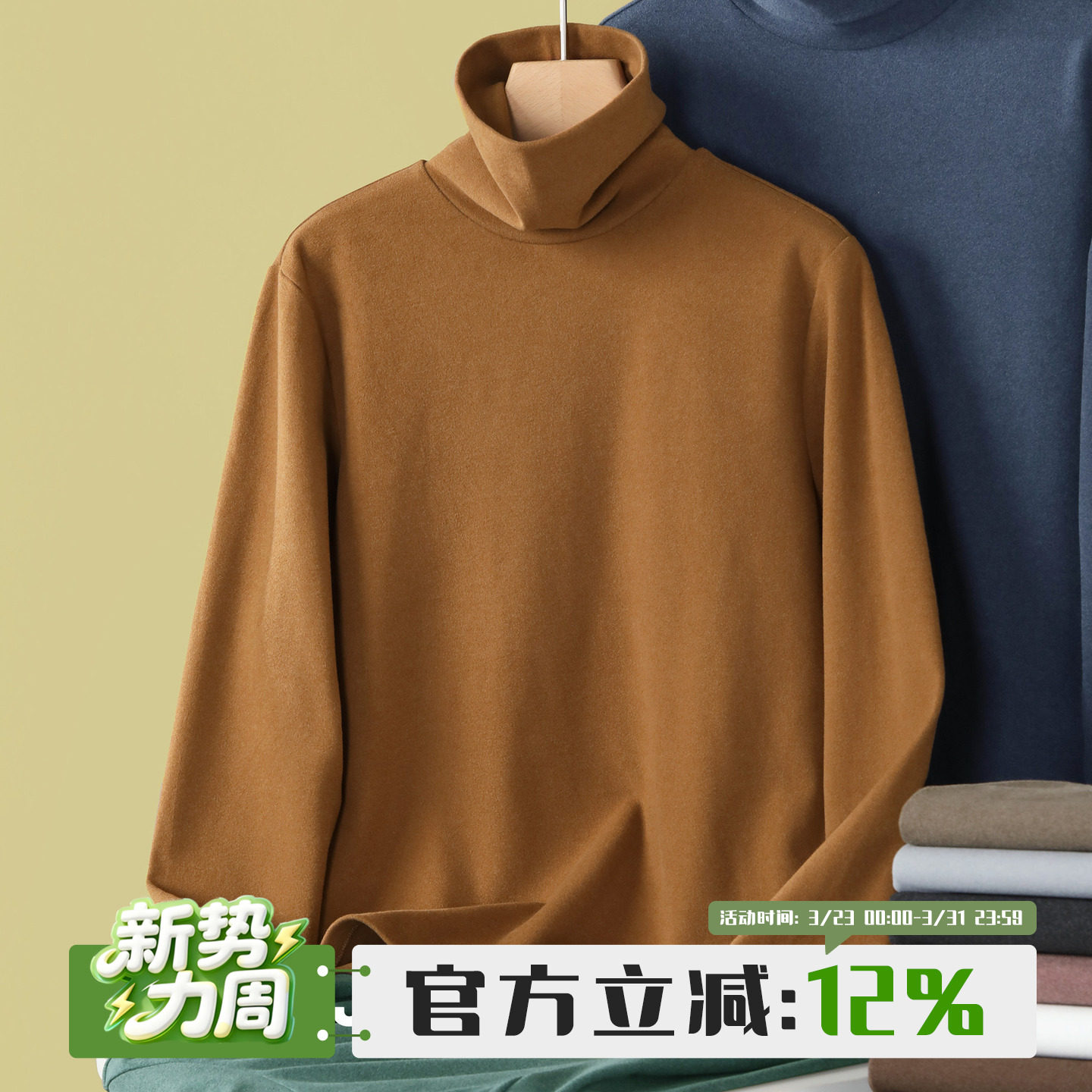 长袖 纯色修身 2025保暖德绒内搭打底上衣男 高领发热暖绒T恤衫 介乙