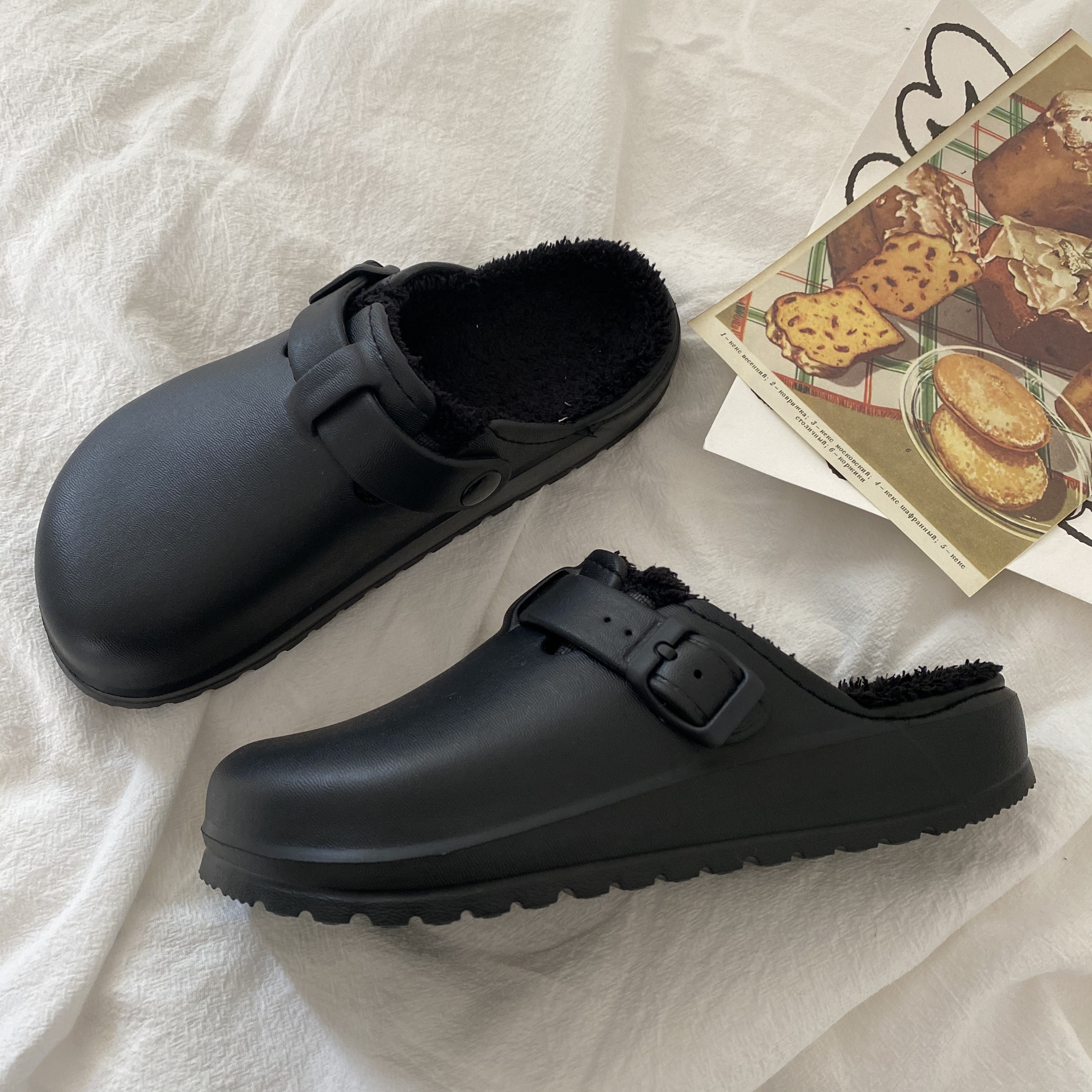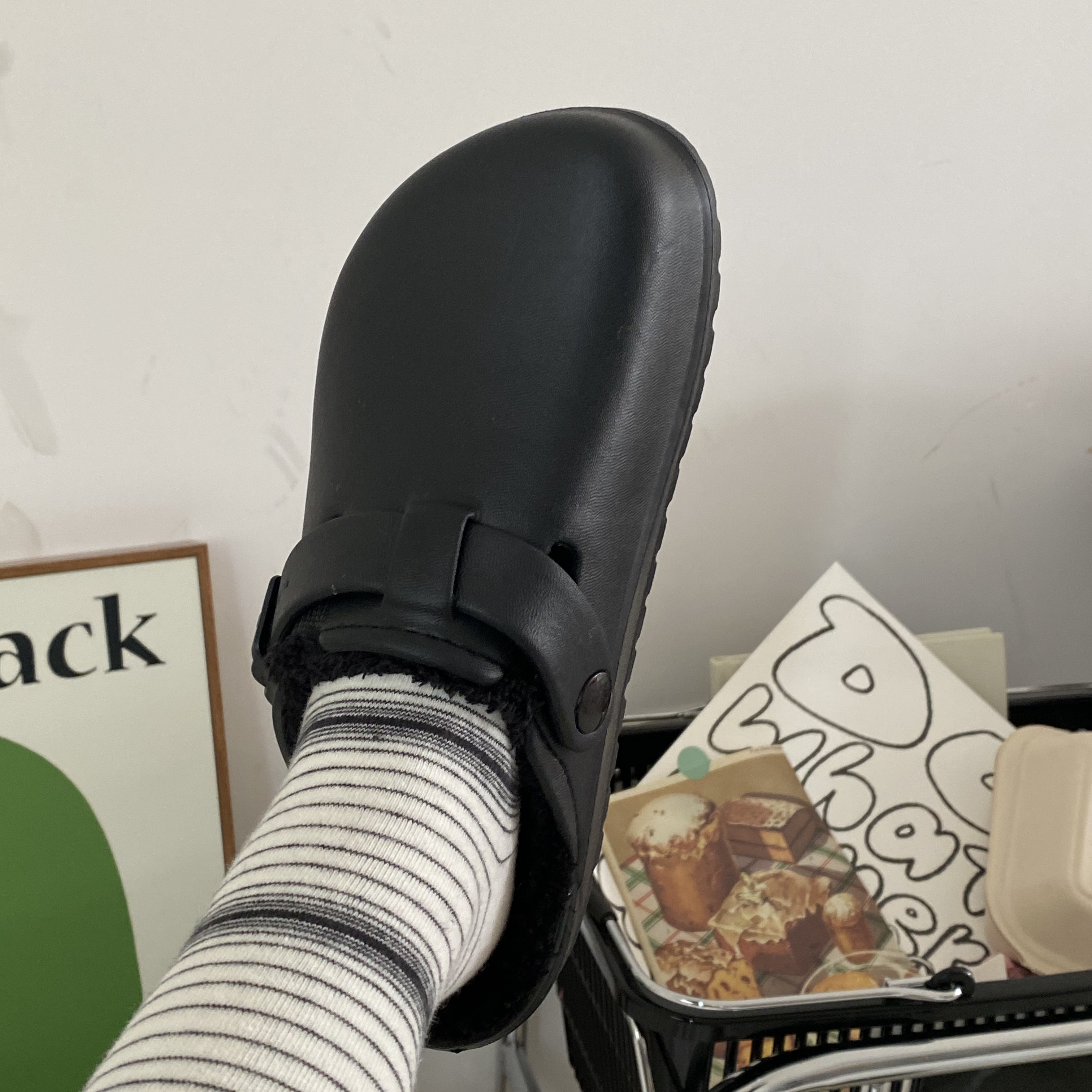 拖鞋 勃肯鞋 加绒一脚蹬毛毛棉鞋 女秋冬外穿2025新款 厚底包头半拖鞋