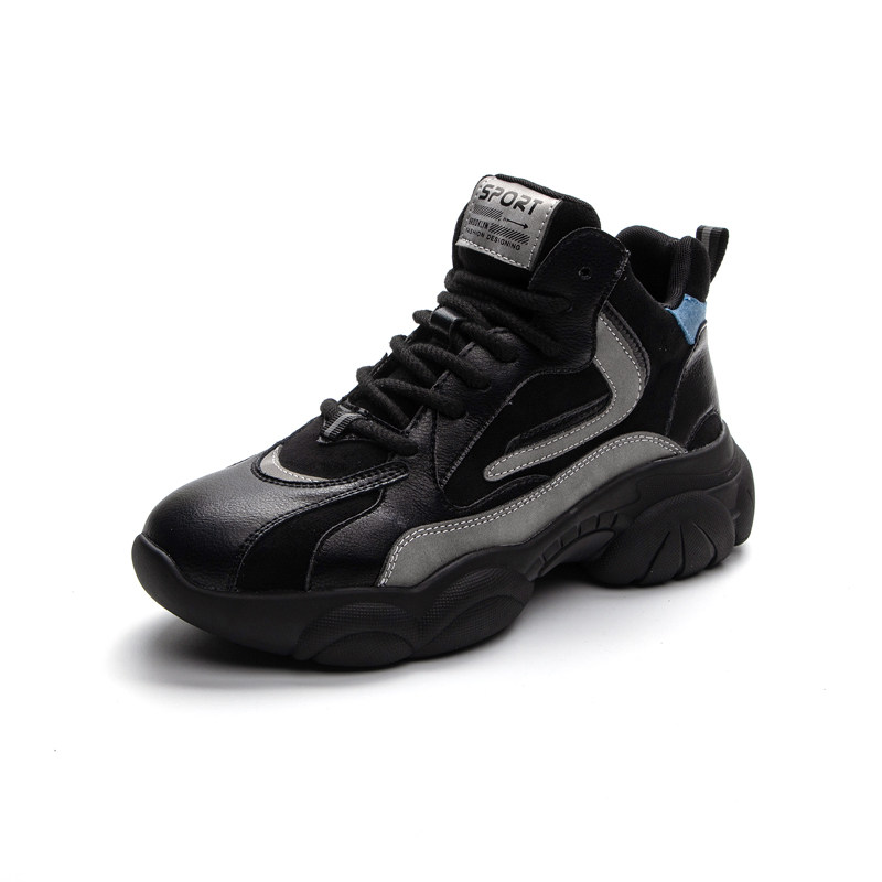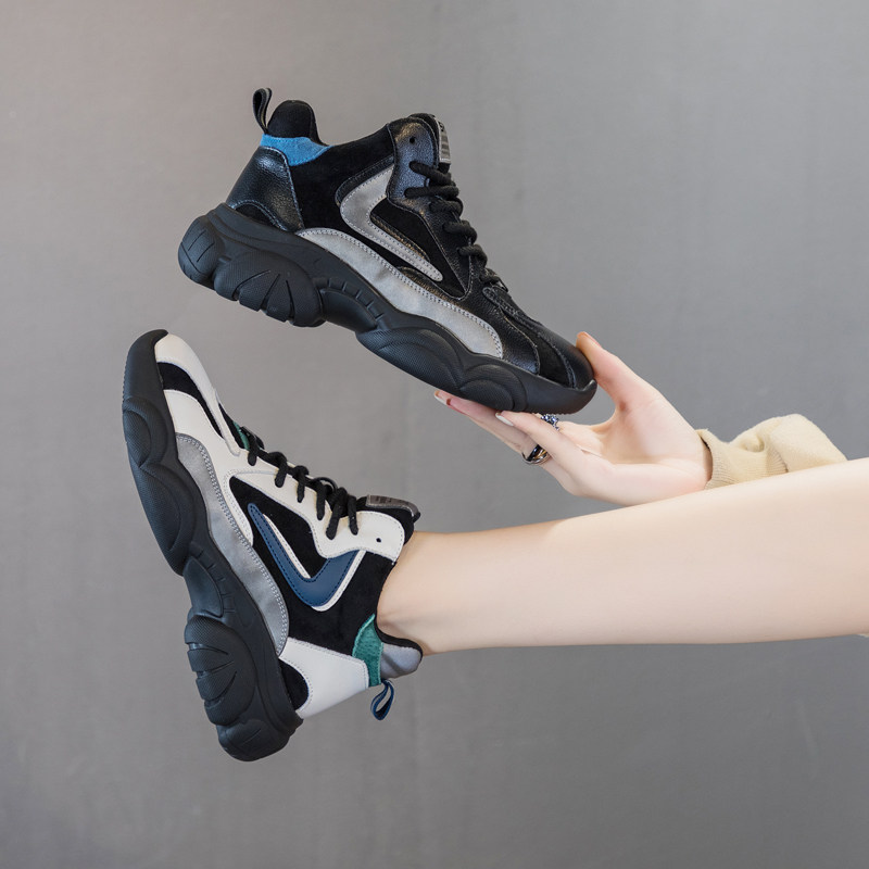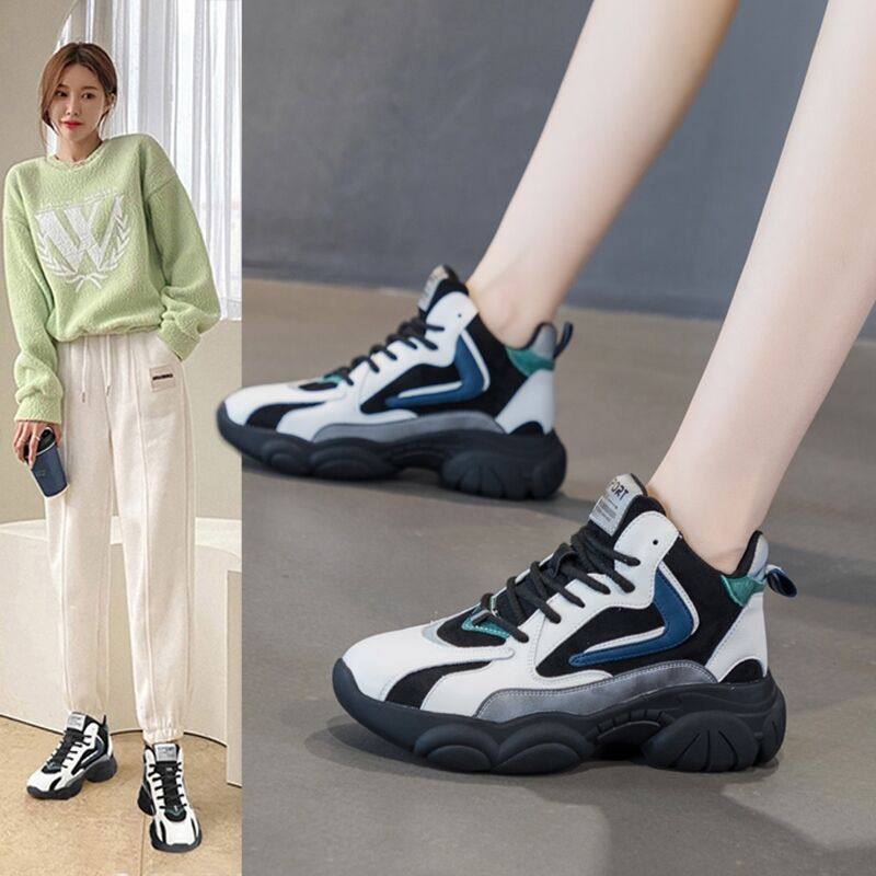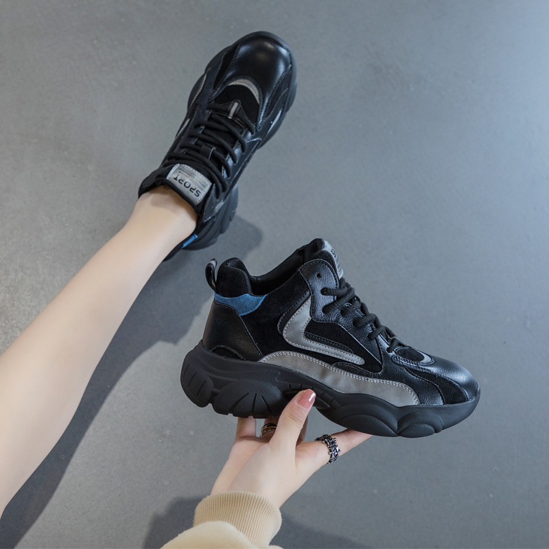 网红加绒休闲运动鞋 女ins潮2023秋冬新款 老爹鞋 真皮厚底高帮爆款