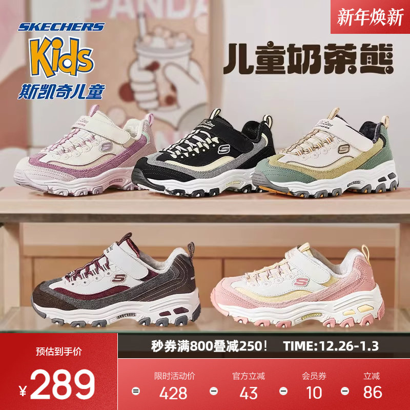 女童熊猫鞋 休闲加绒复古舒适亲子老爹鞋 中大童鞋 斯凯奇奶茶熊