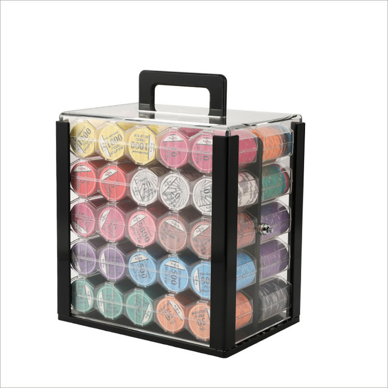 40mm筹码 带锁透明筹码 1000片45 箱展示盒含10个小盒可装