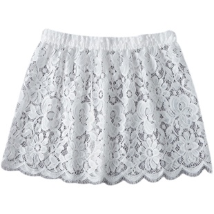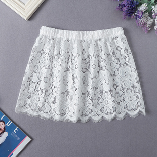 白色蕾丝蓬蓬蛋糕短裙女夏季 胖妹妹mm高腰遮胯显瘦a字半身裙 新款