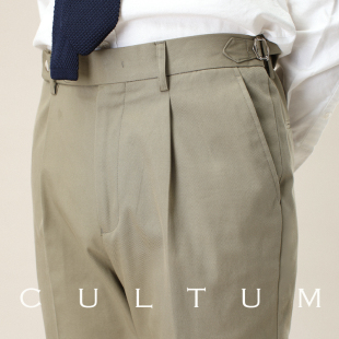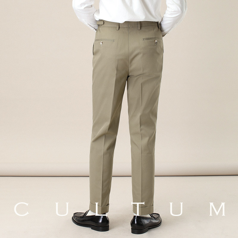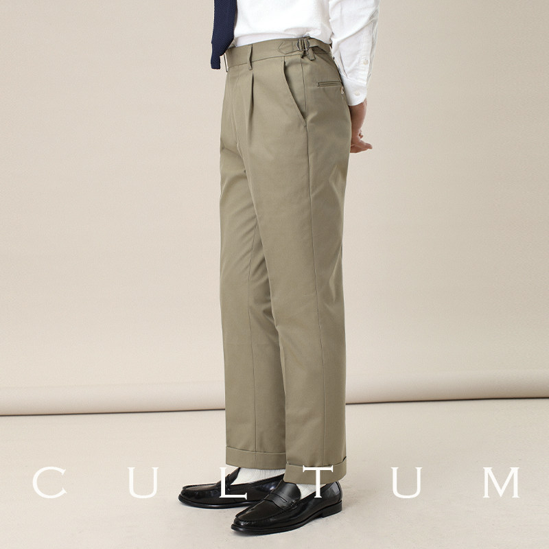 男直筒绅士潮流百搭免烫西裤 CULTUM 巴黎扣调节褶边卡其布休闲裤