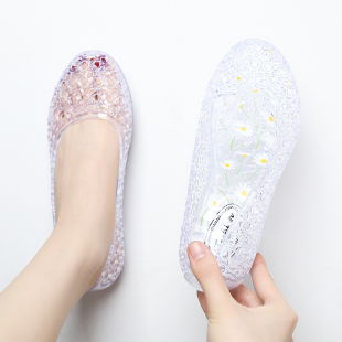 简约外穿 坡跟水晶果冻透明时尚 网红包头镂空凉鞋 女夏防滑妈妈单鞋
