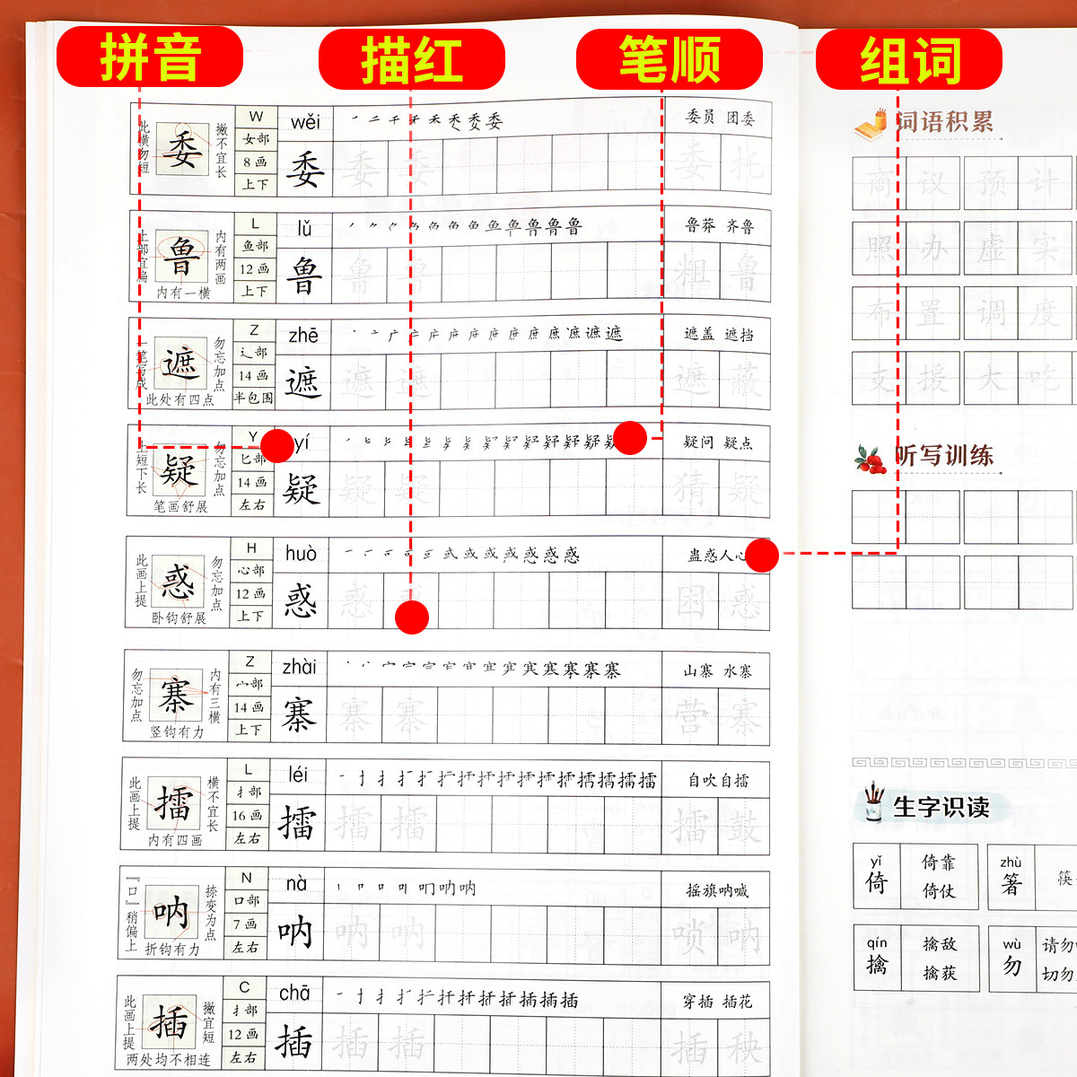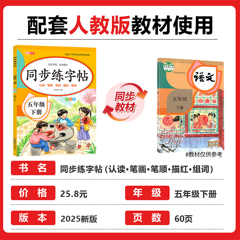 2026新版 练字帖小学生专用5下学期语文课本教材训练生字描红硬笔书法练习正楷书练字本写字课课练RJ 五年级下册同步字帖人教版