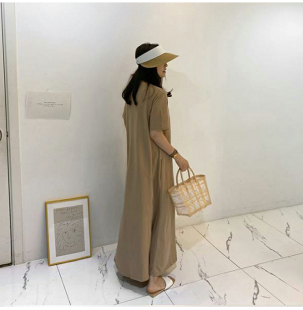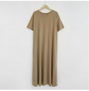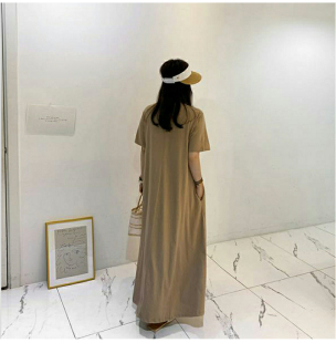 宽松超纯棉口袋大码 夏季 过膝t恤连衣裙a字裙韩版 长款 长裙 套头短袖
