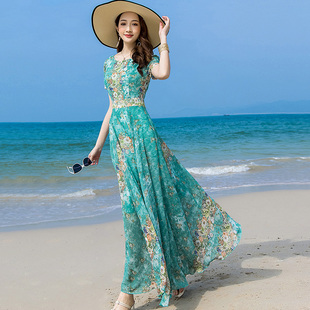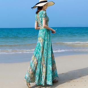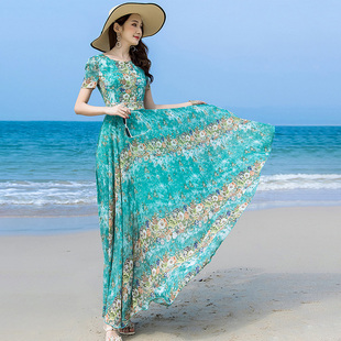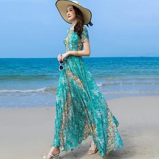 高端真丝桑蚕丝连衣裙气质修身 超仙时尚 沙滩大摆长裙 新款 2025夏季