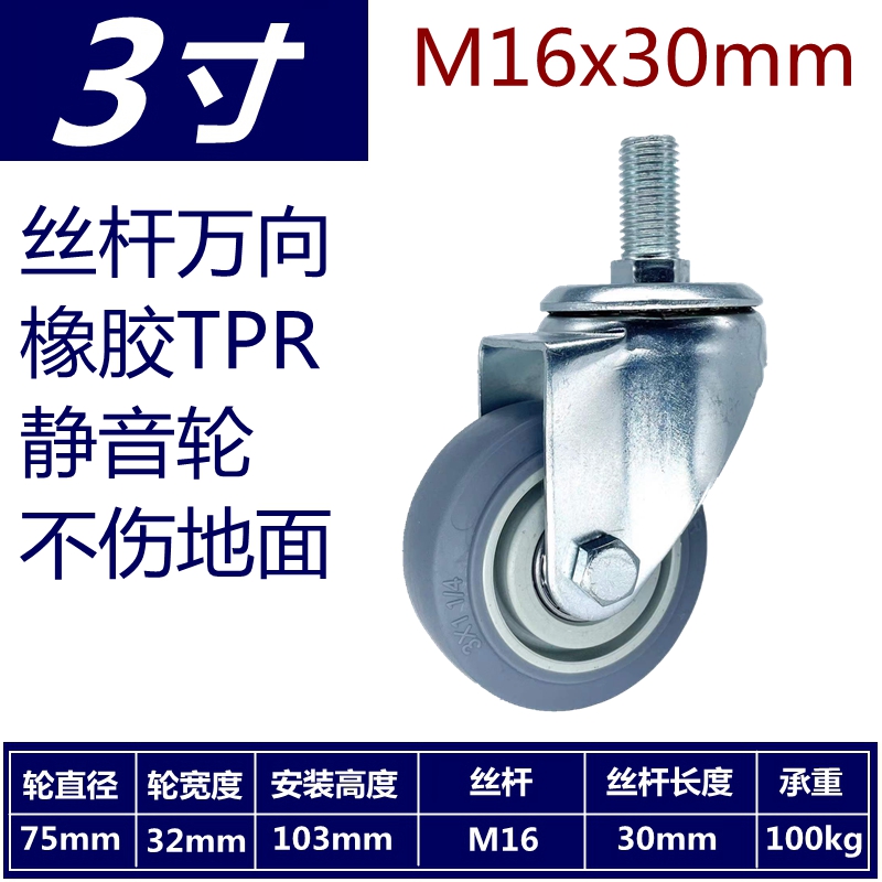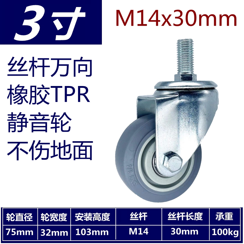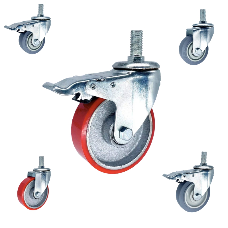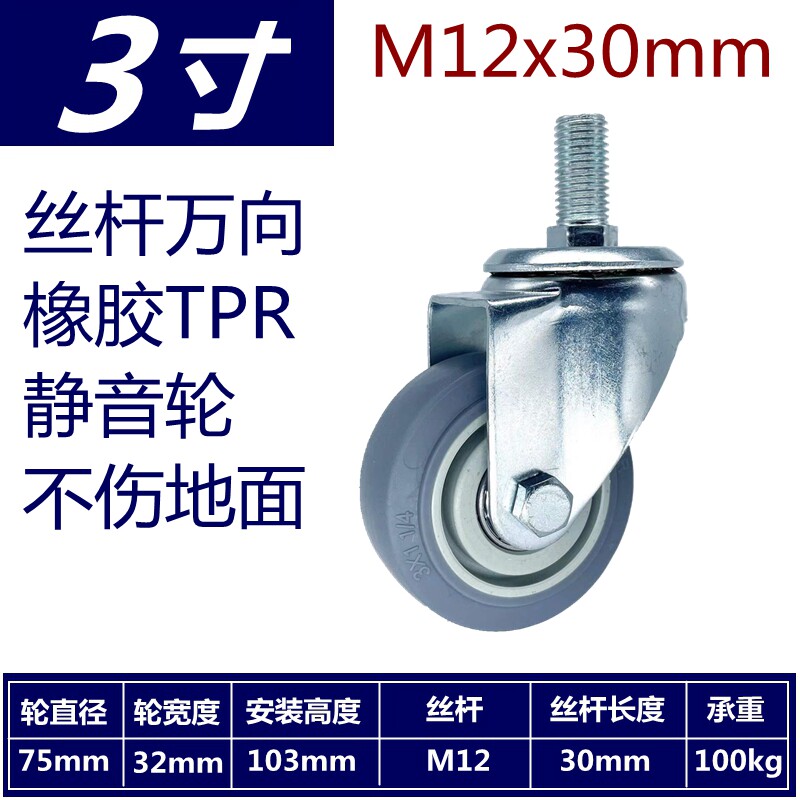 万向轮脚轮1.5寸2寸M8M10M12丝杆双轴承万向轮刹车轮静音脚轮轱辘