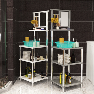 304加厚多层不锈钢洗脸盆架子三角架厨房卫生间落地置物架面盆架