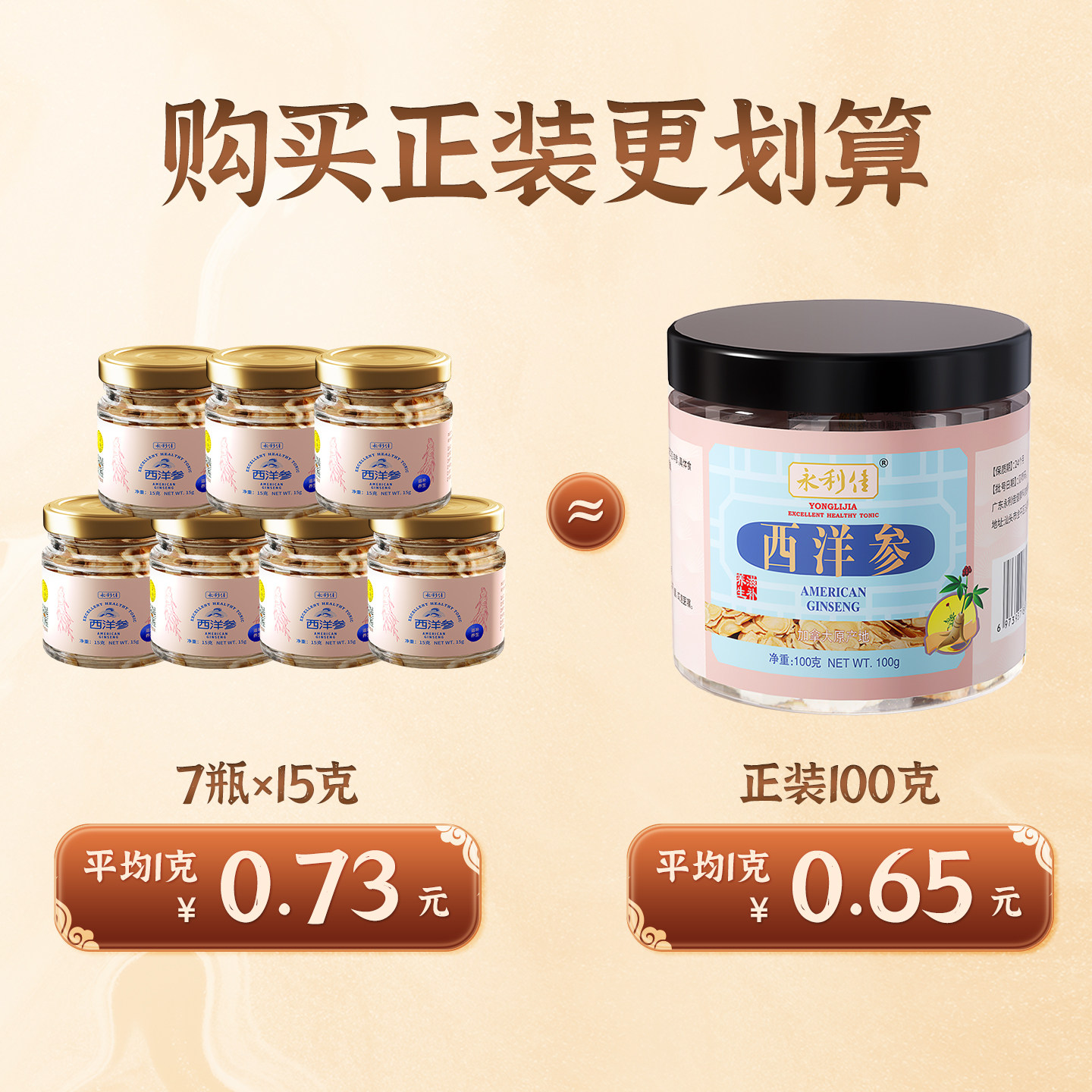 永利佳西洋参片整枝切片加拿大西洋参花旗参含片泡茶大片15g