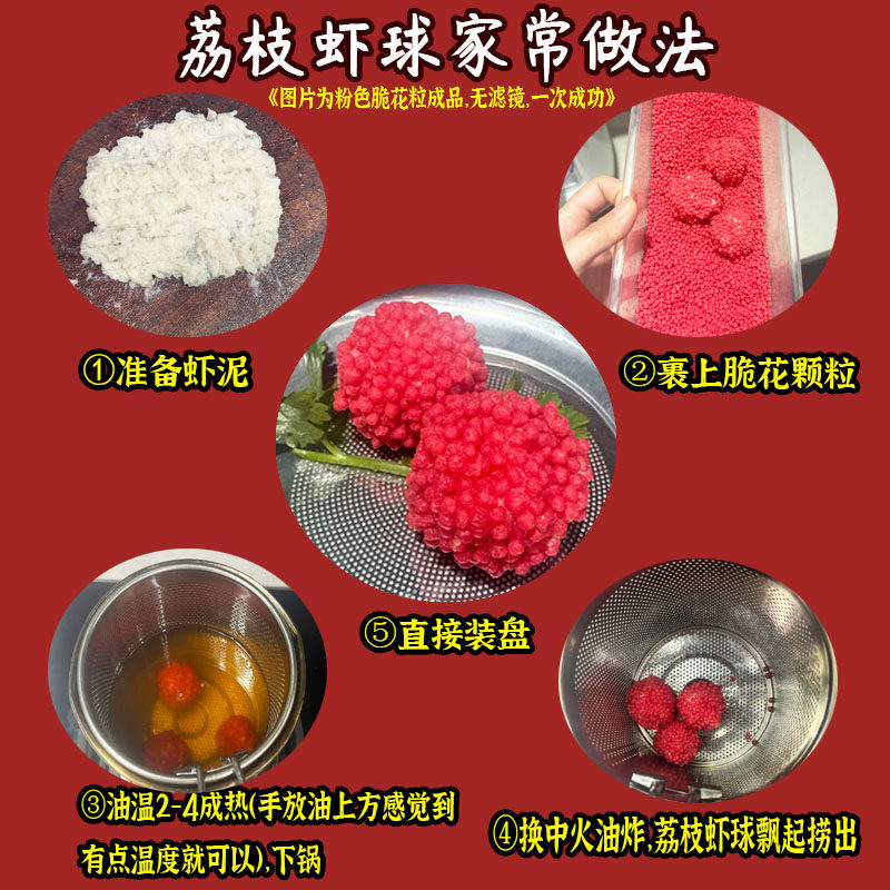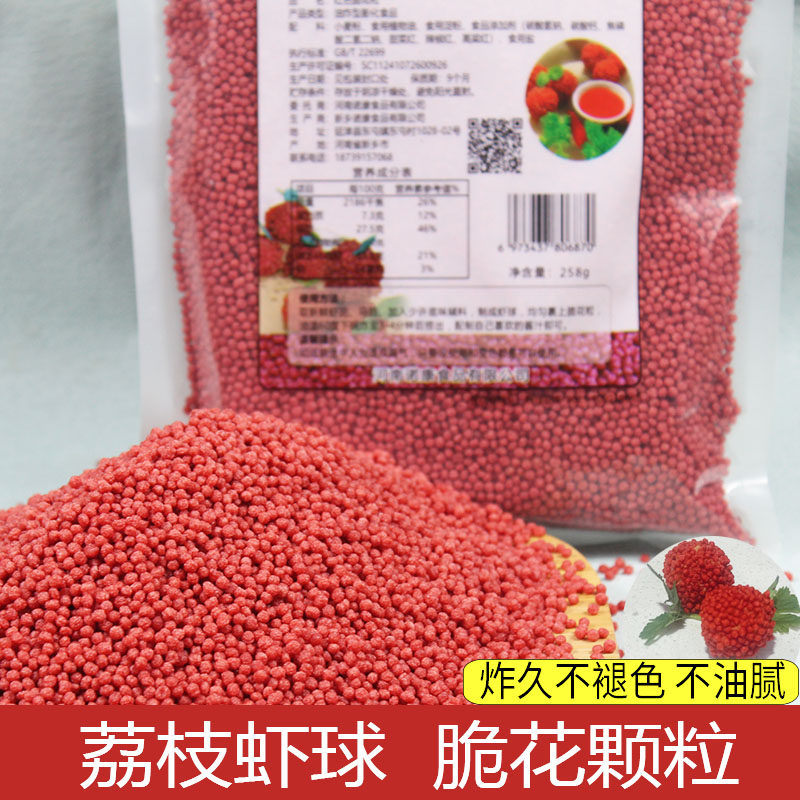 荔枝虾球脆花颗粒网红妃子笑红色荔枝球五彩粒粒脆脆米粒油炸虾球