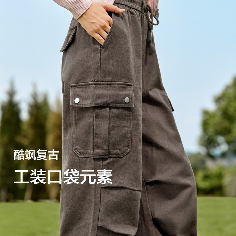 裤 森马休闲裤 抽绳阔腿工装 潮流酷飒风女士冬季 复古 女抓绒降落伞裤
