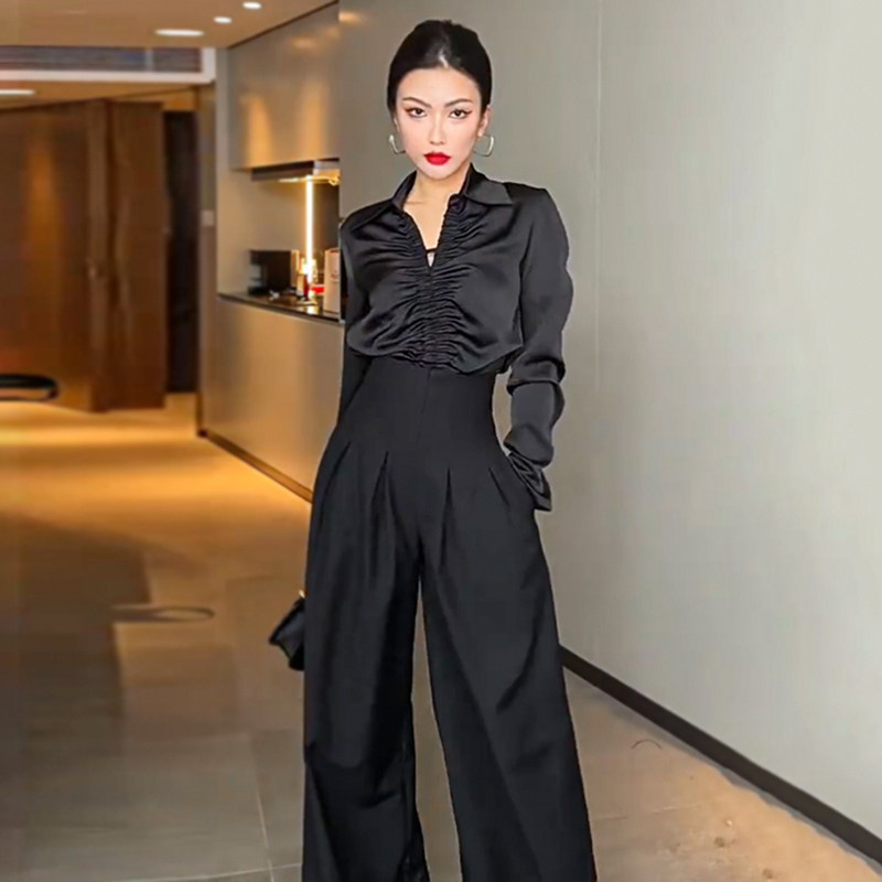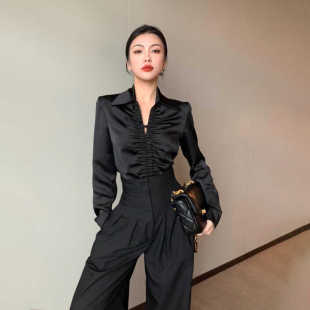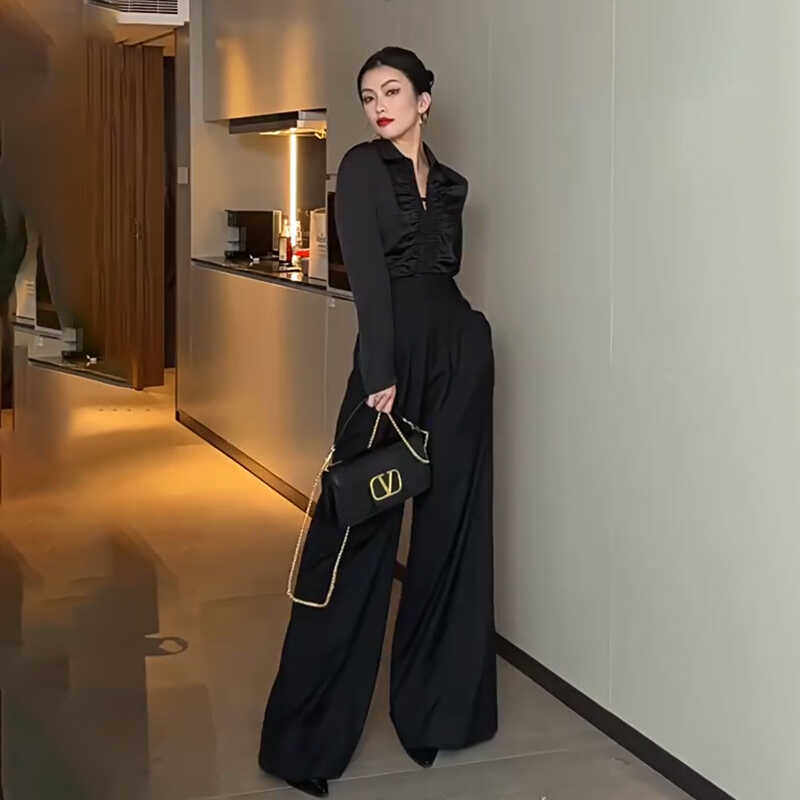 拖地长裤 高腰阔腿裤 裤 黑色宽松显瘦垂感休闲西装 子 女春夏2026新款