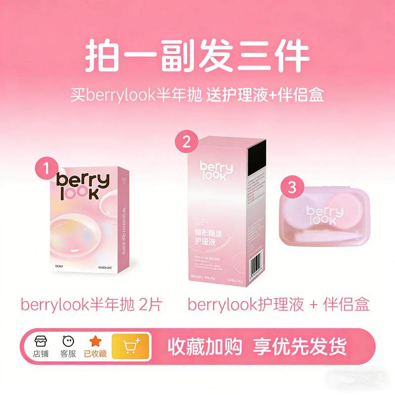 berrylook美瞳半年抛2片有点甜小灯泡自然舒适彩色隐形眼镜旗舰店
