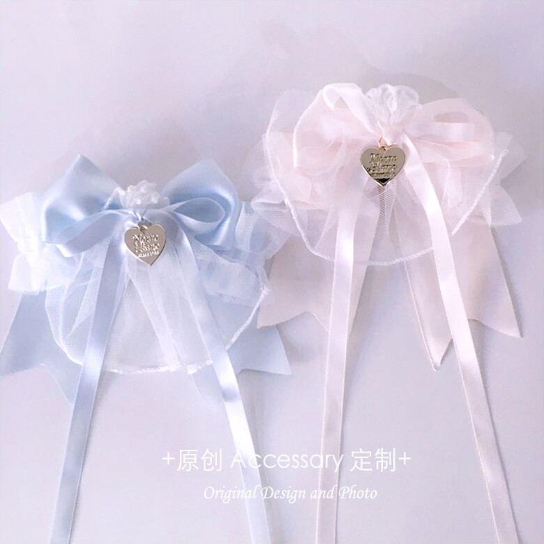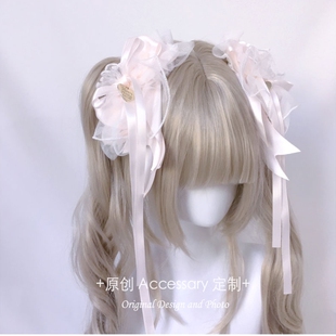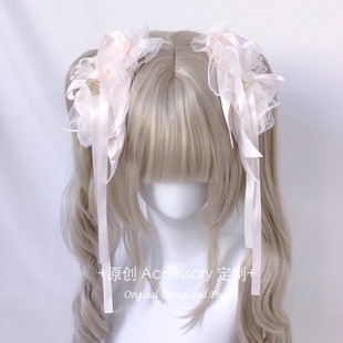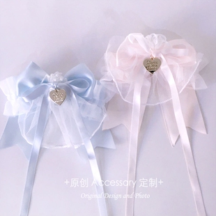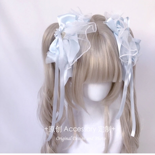 亚文化lolita少女芭蕾风日系飘带蝴蝶结发夹粉蓝色纱带对夹发饰