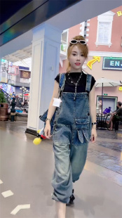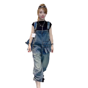 哈伦复古休闲连体裤 韩版 宽松显瘦减龄个性 2025春秋新款 背带牛仔裤